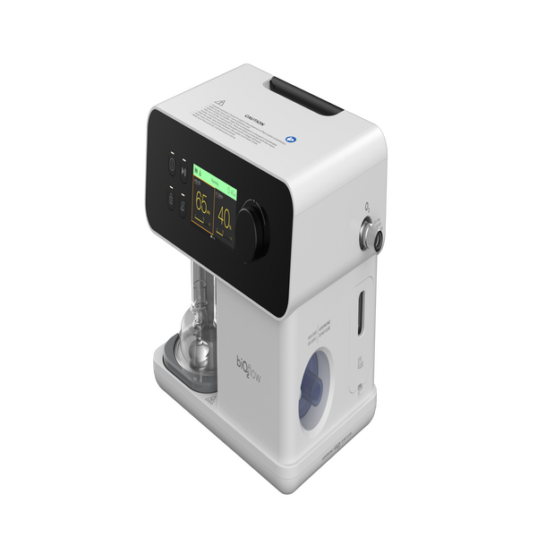 Bio2flow, which breaks new ground in High Flow Oxygen Therapy with its innovative features, shows its difference with its ergonomic design and easy usage. Thanks to its structure that emphasizes functionality; it can be used not only in hospitals but also in home care situations without the need for a healthcare professional. High flow oxygen therapy provided by Bio2flow reduces the probability of patients being intubated. It also allows the patient to be treated without the need for intensive care. Thanks to the product developed after long R&D processes and by analyzing the needs of the health sector, the desired level of oxygen therapy can be provided to the patient.
