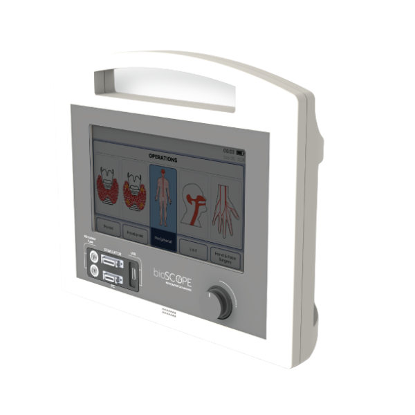 Bioscope intraoperative neuromonitor is essential for eliminating or minimizing the neurologic damages. Neuro-monitorization enables to assess the functional integrity of the neural structures under the risk of damage. It is a system that helps the surgeon for the purpose of protecting the patient health by monitoring visually and aurally the nerves under risk during bioscope thyroid, parathyroid, hand and face surgery.